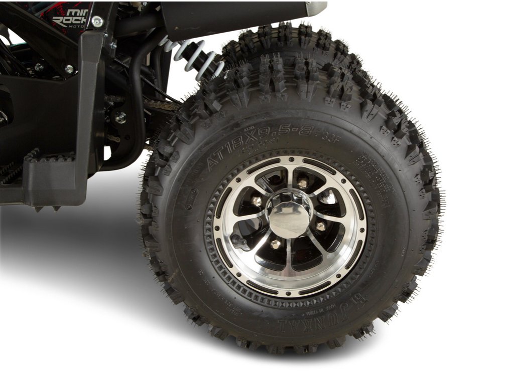 A biztonság mindennél fontosabb A gyermekei biztonságát maximális mértékben szem előtt tartjuk. A quad rendelkezik gázlimitálóval a maximális sebesség beállításához és távirányítóval a motor azonnali leállításához. További védelem érdekében a quad utas háttámlával és lábvédővel van felszerelve, ami minimalizálja a sérülés vagy a sárba való beszennyeződés kockázatát. A hidraulikus fékek biztosítják az egyszerű és hatékony fékezést.