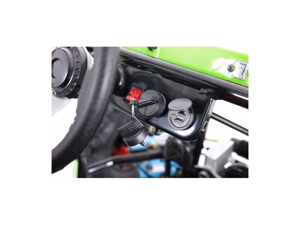 Szuperúj a szlovák piacon, robusztus széfváz, biztonsági övek, üzemanyagszintmérő a tankon, állítható rugómerevség, láncburkolat, 12V-os akkumulátor, elektromos indító, folyékony tárcsafékek elöl-hátul, rögzítő kézifék, funkcionális fényszóró, kürt, hátsó tartó , a vezetőpanelen van egy kulcs a gyújtás bekapcsolásához és az indításhoz, szívató, jelzőfények a bekapcsolt sebességfokozathoz, villanykapcsoló, kürt gomb