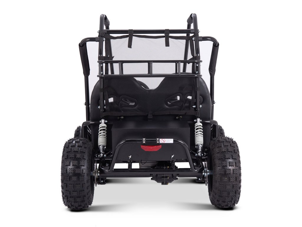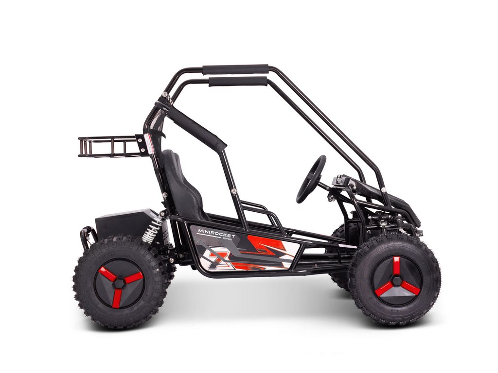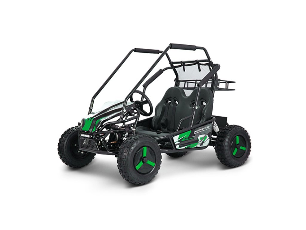 Stílusos, kényelmes, gyors, strapabíró – ez a MiniRocket ECOBuggy elektromos buggy. A járművet egy 2000 W-os motor hajtja, amely akár 40 km/h sebességre is képes. A biztonságról a buggy körül teljesen végigfutó védőkeret gondoskodik. A fékezést a hátsó tengelyen elhelyezett két darab hidraulikus fék biztosítja. Az ECOBuggy praktikus hátsó csomagtartóval is rendelkezik, amelyet egy biztonsági háló választ el a vezetőtértől. Az ECOBuggy kezelése rendkívül egyszerű – a műszerfalon található gombok segítségével. Itt választható a 3 sebességfokozat, a hátramenet, valamint megtalálható az akkumulátor töltöttségi szintjét jelző kijelző is. Az ECOBuggy ideális választás mindazoknak, akik élvezni szeretnék a terepezés élményét, de nem akarnak motorjavítással, olajcserével vagy más kellemetlenségekkel foglalkozni, amelyek a benzines modelleknél jellemzőek.