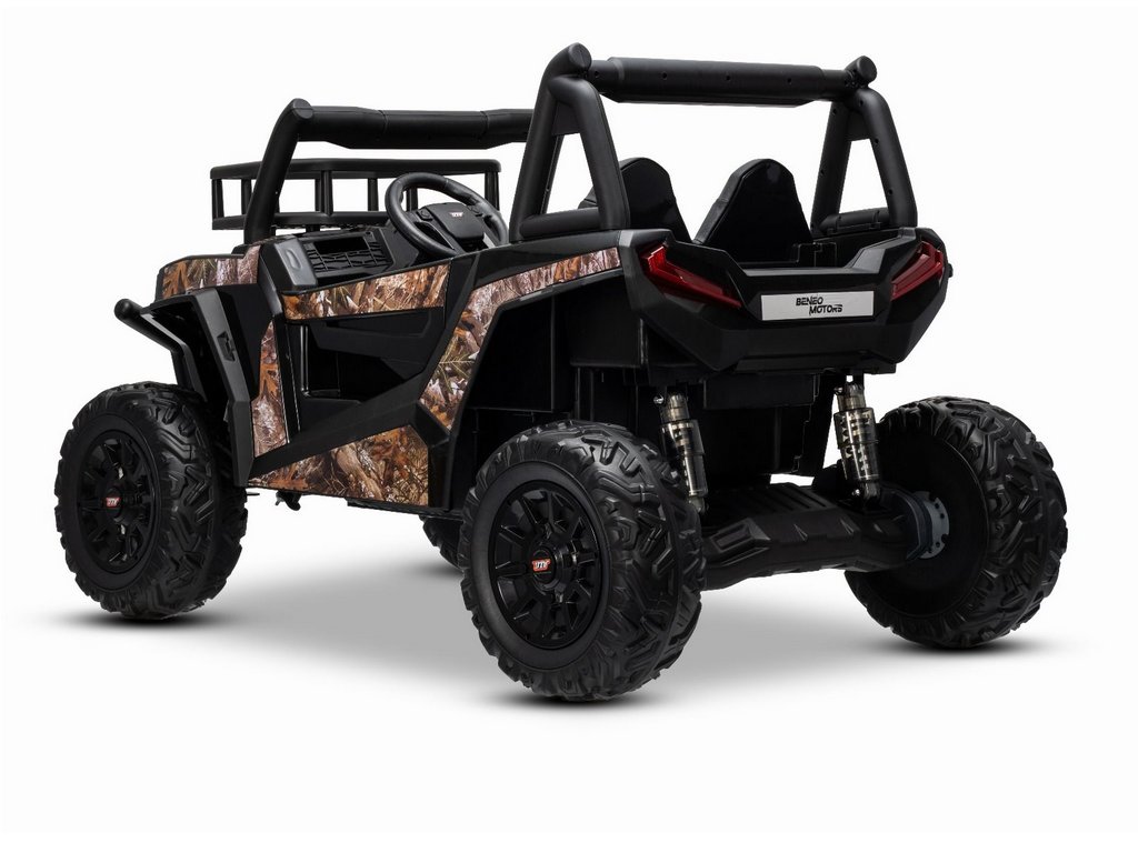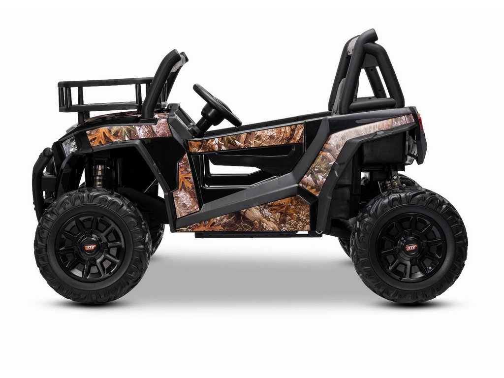 Az UTV kisautó robusztus megjelenésű, nyitható ajtókkal, 2 tárolóhellyel, kiváló minőségű anyagokkal és kidolgozással rendelkezik. Két műbőr ülés található benne, így két gyermek számára is alkalmas.