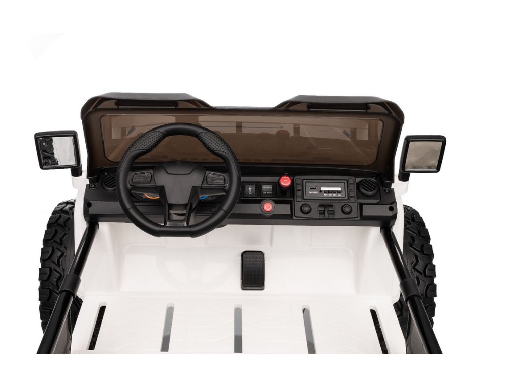 A kényelmet és biztonságot az ülésen található állítható biztonsági öv biztosítja, amely stabilan tartja a gyermeket az egész út során. A nyitható motorháztető fokozza a játékélményt. A műszerfalon található akkumulátor töltöttségjelző időben figyelmeztet, ha tölteni kell az akkumulátort.