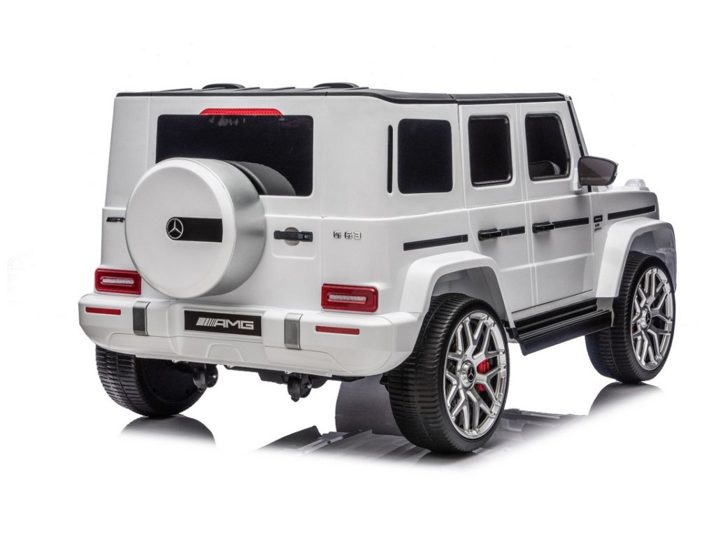 Az eredeti Mercedes-Benz licenccel rendelkező G63 AMG 4x4 elektromos kisautó a luxus, az erő és a biztonság tökéletes kombinációja. Ez a kétszemélyes elektromos autó kényelmesen alkalmas két gyermek számára, így ideális választás testvéreknek vagy közös játékhoz.