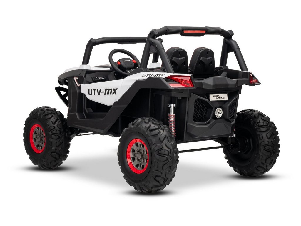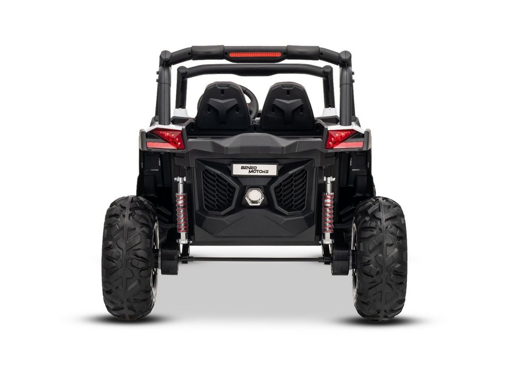 Kétszemélyes kialakításával és minőségi anyagaival ideális választás kertbe és terepre is. Az egyszerű irányítást a modern 2,4 GHz-es távirányító biztosítja, amely lehetővé teszi a szülők számára a sebesség és az irány teljes ellenőrzését.