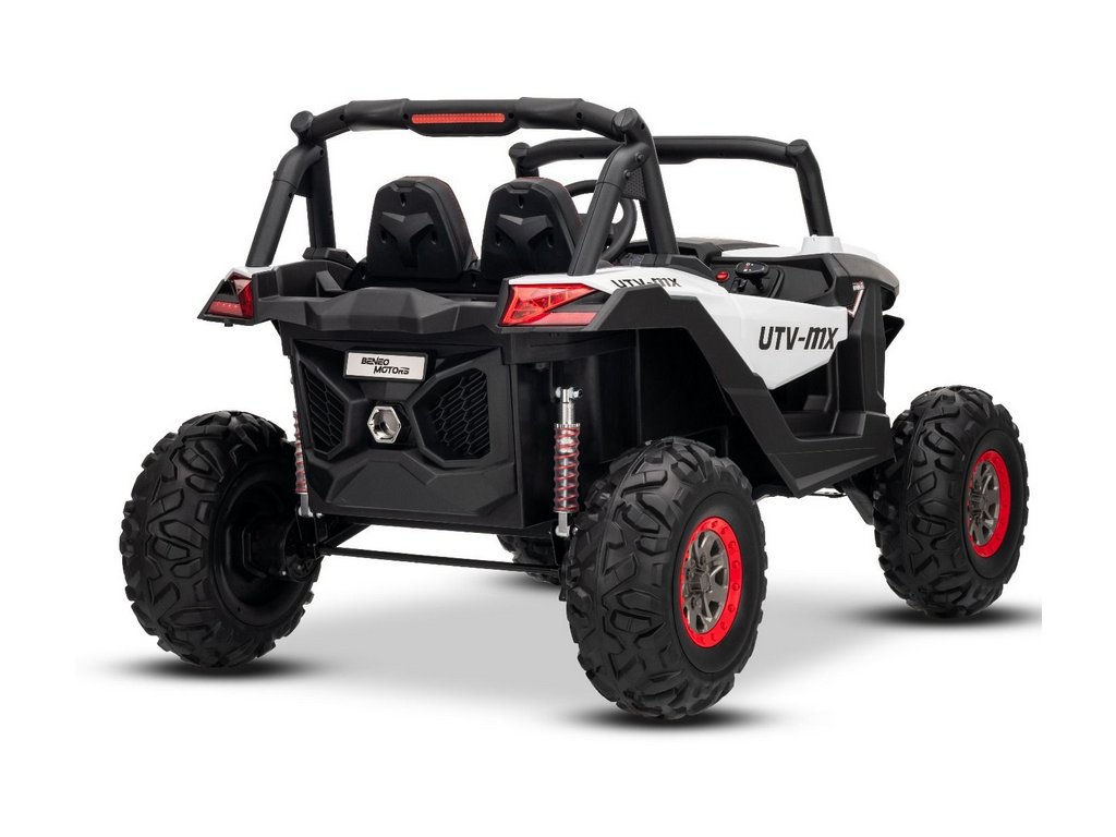 Kétszemélyes kialakításával és minőségi anyagaival ideális választás kertbe és terepre is. Az egyszerű irányítást a modern 2,4 GHz-es távirányító biztosítja, amely lehetővé teszi a szülők számára a sebesség és az irány teljes ellenőrzését.