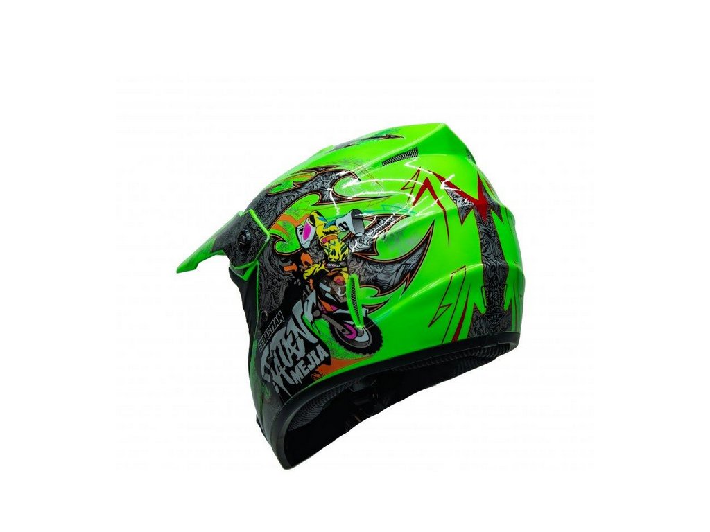 Ez a Mejia sportsisak ideális társ az olyan tevékenységekhez, mint: quadozás, motocross és lesiklás. A zseniális szellőzőrendszer még magas hőmérsékleten is biztosítja a megfelelő légkondicionálást és a levegő keringését látás és integrált napellenző Az elegáns, teljes arcot fedő sisak nagyon robusztus, és védi a fejét esés esetén. A sisak belül hálóval van bélelve.