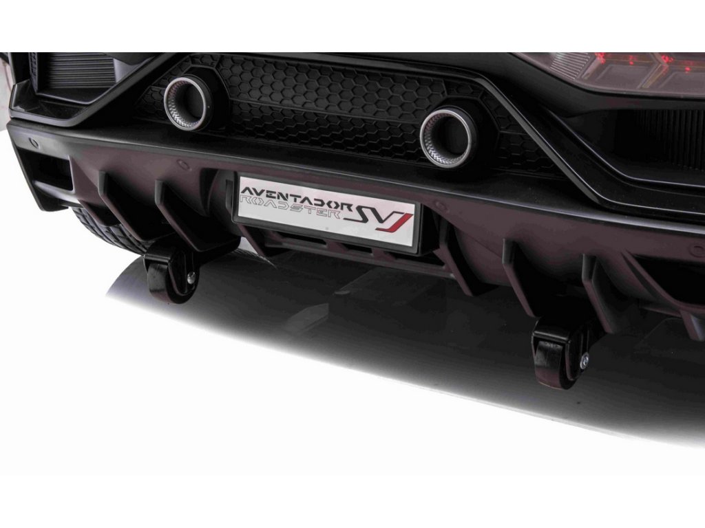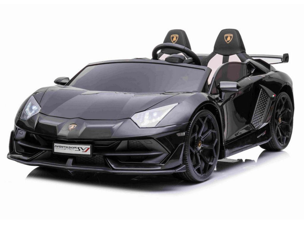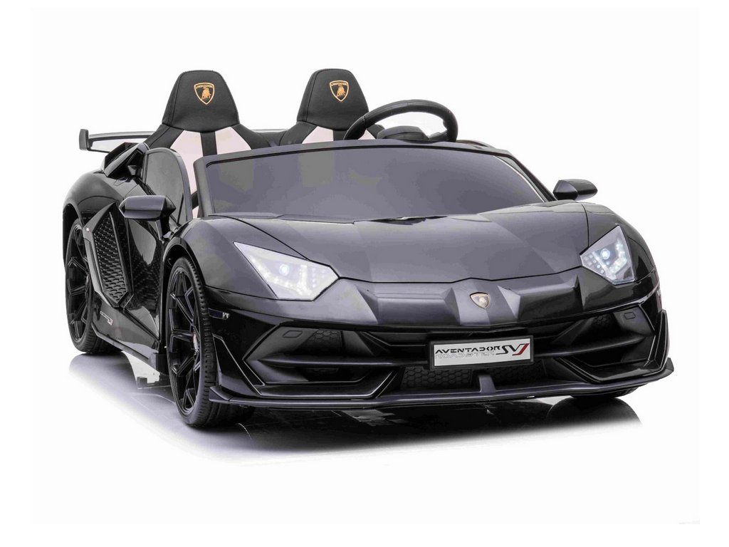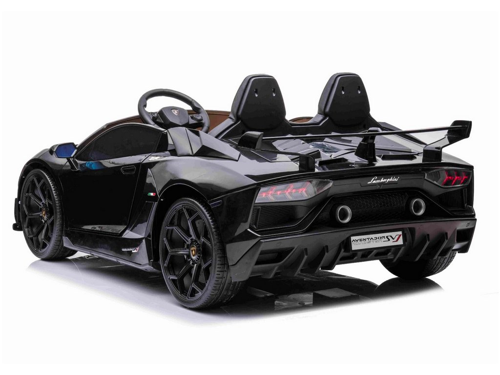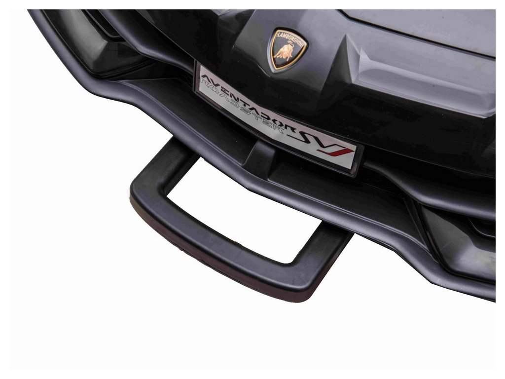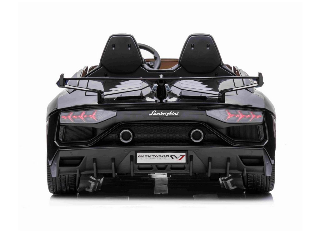 Lamborghini Aventador 24V Kétszemélyes, Fekete fényezés, 2,4 GHz-es távirányító, Puha PU ülések, LCD kijelző, felfüggesztés, függőlegesen nyíló ajtók, Puha EVA kerekek, 2 X 45 W-os MOTOR, EREDETI engedély