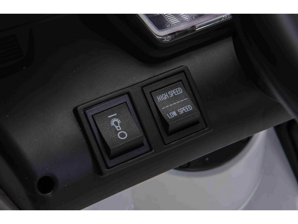 A játékautó egy 2,4 GHz-es új generációs távirányítóval rendelkezik. A távirányítón található vészfék biztosítja az autó teljes irányítását, és a gomb megnyomásával kikapcsol minden funkciót. Az autó mindkét hátsó kereket meghajtja. Elektromos rögzítőfék. Sebességmérő utánzata.