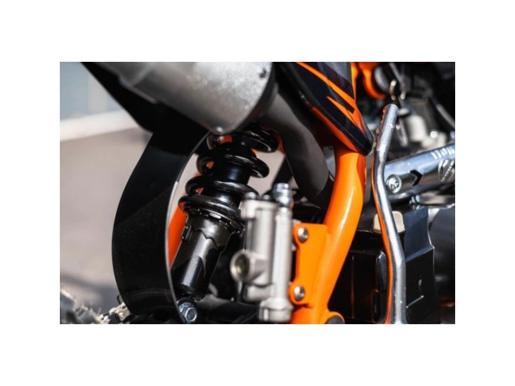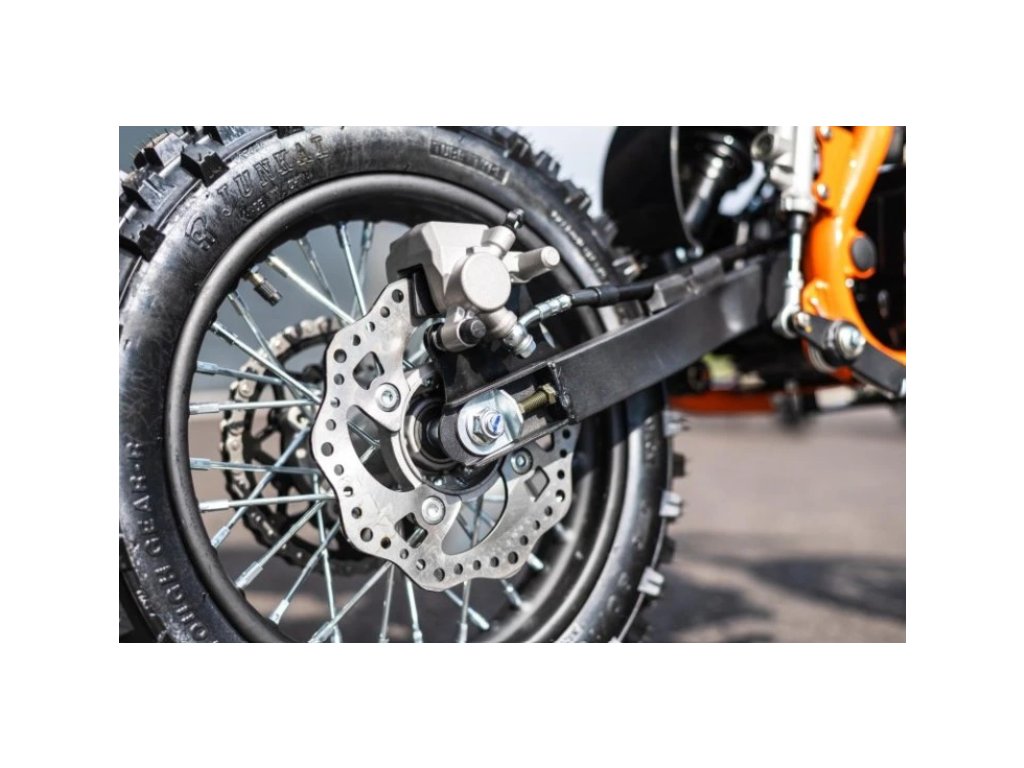 Ez a pitbike egy erőteljes, négyütemű, egyhengeres motorral van felszerelve, amely a teljesítmény és a megbízhatóság optimális kombinációját biztosítja terepjáráshoz. 125 cm³-es űrtartalmával és 8 kW teljesítményével ez a motor még a legigényesebb körülményekhez is alkalmas. A négyütemű technológia hatékony motorműködést, alacsonyabb üzemanyag-fogyasztást és hosszabb élettartamot biztosít. Ez az egyhengeres motor léghűtéses is, ami garantálja a megbízható működést még magasabb hőmérsékleten is.