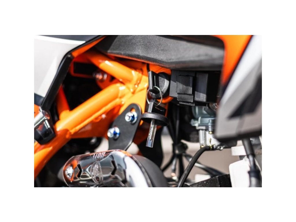 Ez a pitbike egy erőteljes, négyütemű, egyhengeres motorral van felszerelve, amely a teljesítmény és a megbízhatóság optimális kombinációját biztosítja terepjáráshoz. 125 cm³-es űrtartalmával és 8 kW teljesítményével ez a motor még a legigényesebb körülményekhez is alkalmas. A négyütemű technológia hatékony motorműködést, alacsonyabb üzemanyag-fogyasztást és hosszabb élettartamot biztosít. Ez az egyhengeres motor léghűtéses is, ami garantálja a megbízható működést még magasabb hőmérsékleten is.