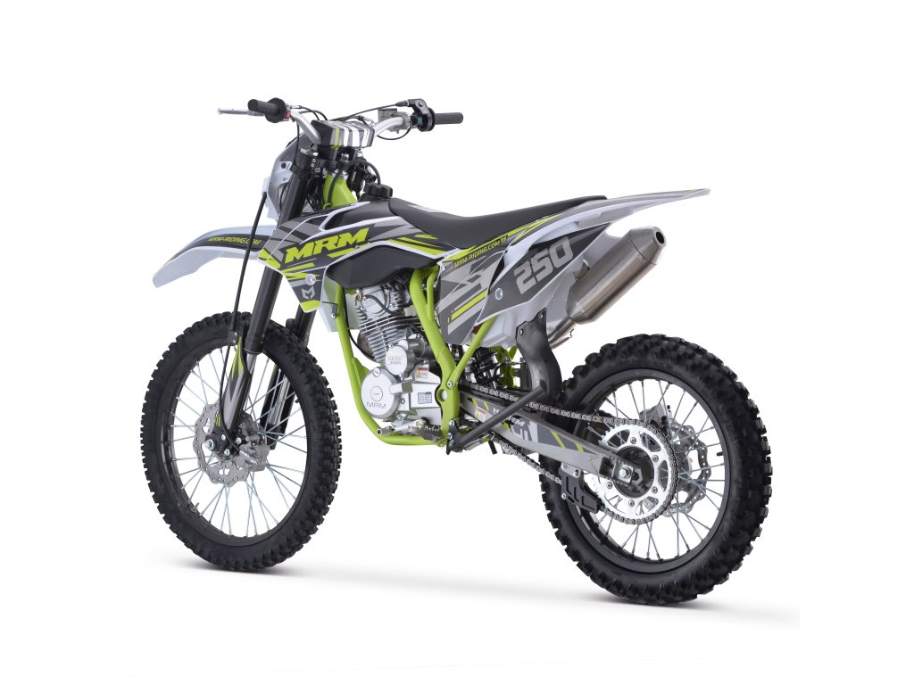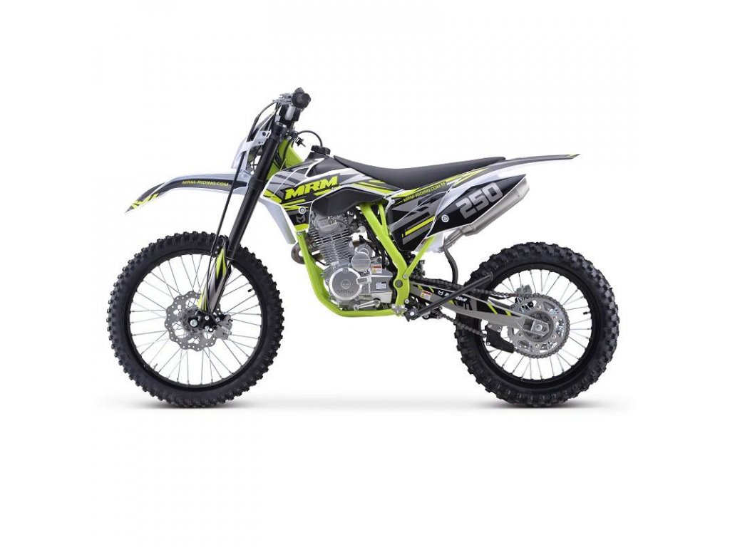 Teljes méretű motorkerékpár 21" első és 18" hátsó kerekekkel. A megfelelő teljesítményt a 250 köbcentis motor garantálja, ötfokozatú váltóval. A motorkerékpár első és hátsó hidraulikus fékekkel, állítható merevségű lengéscsillapítókkal (nehéz terepen is garantálja a kényelmes vezetést), masszív acélvázzal és hangolt kipufogóval van felszerelve, ami a kiváló hangzás garanciája. A felszerelt abroncsokat terepre választották ki.