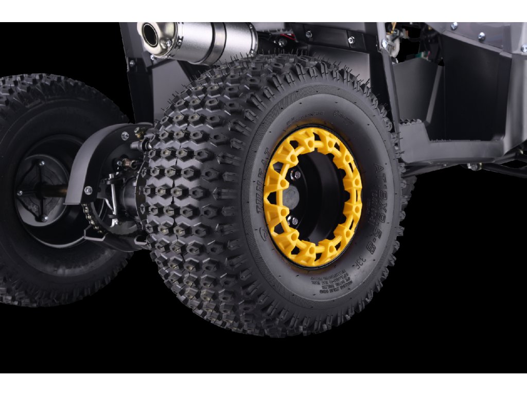 - Kerekek: Első gumiabroncs 19 x 7 - 8 hüvelyk és hátsó gumiabroncs 18 x 9,5 - 8 hüvelyk